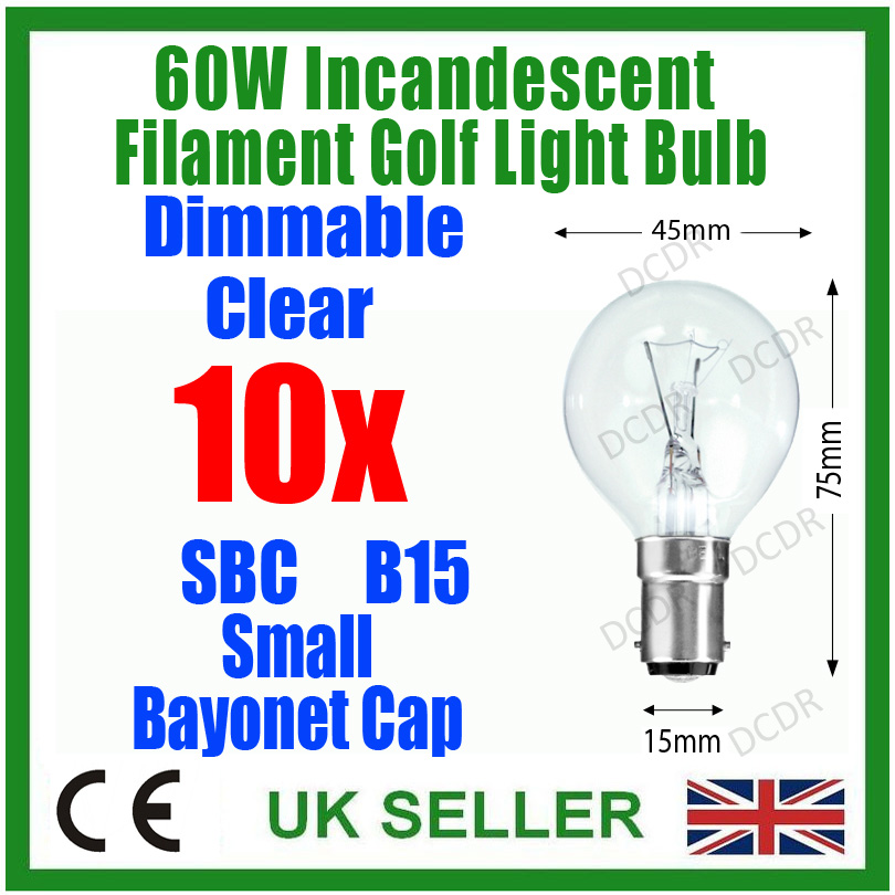 10x 60 WATT CLEAR ROUND GOLF LIGHT BULBS