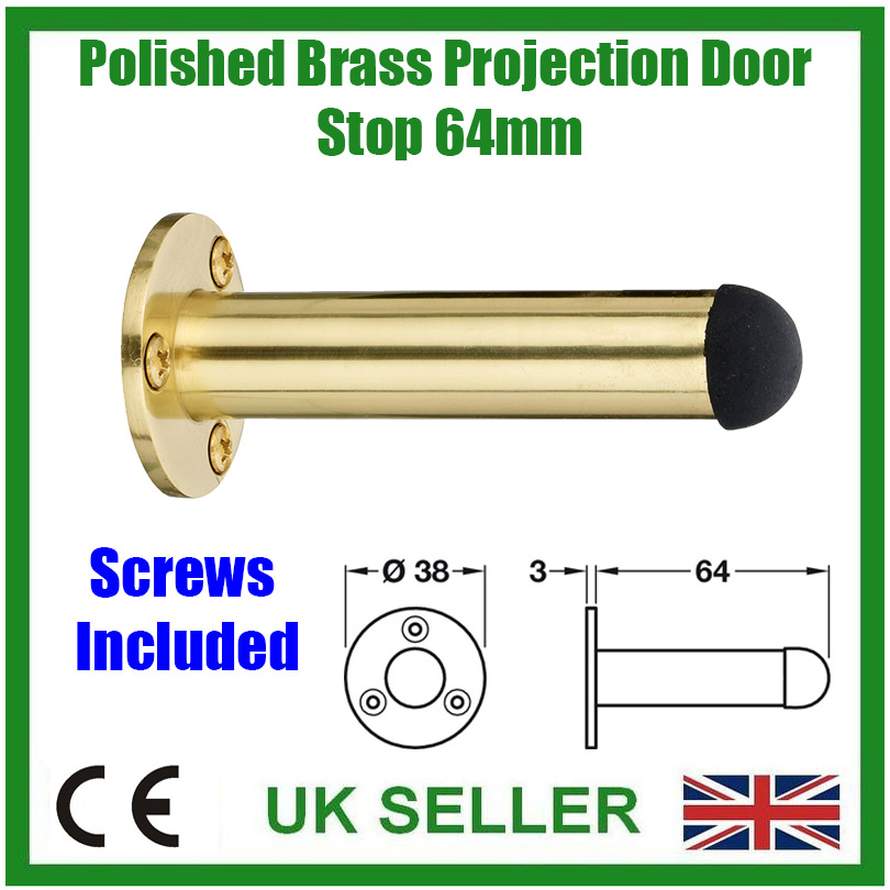 12x Polished Brass Metal Projection Door Stop, Wall Mount, 64mm