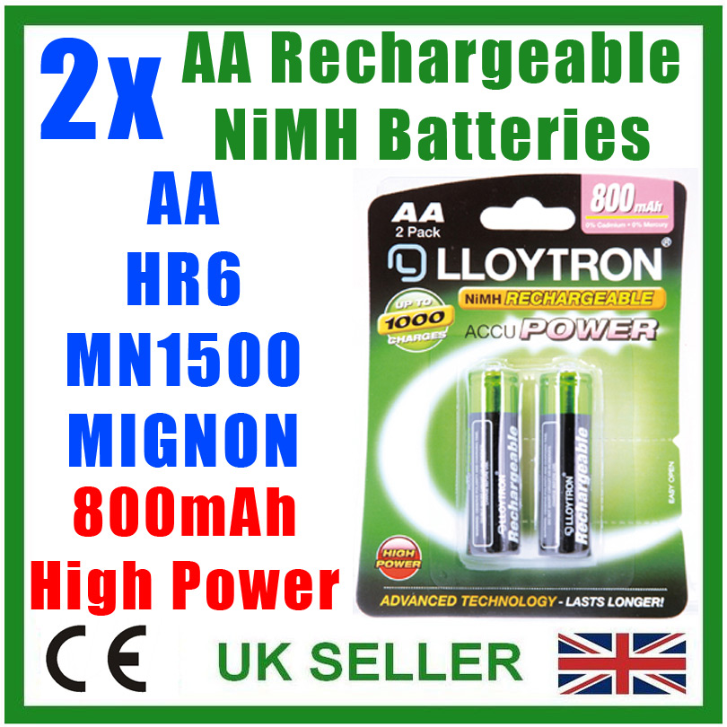 2x AA Rechargeable NiMH Batteries, HR6, MN1500