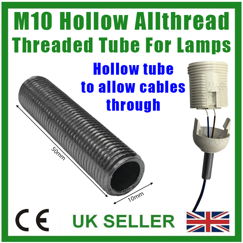 This M10 Allthread hollow rod, allows you to secure M10 light bulb sockets to your lamp as well as passing through electrical cables to the lamp socket.