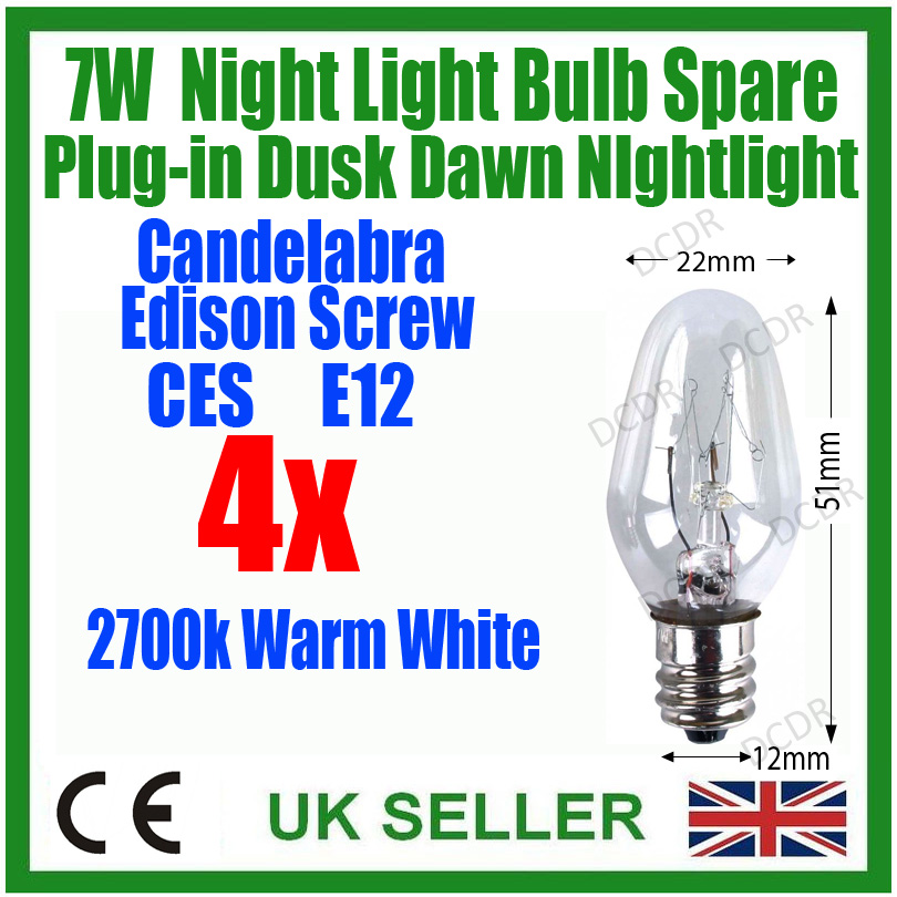 4x 7W Night Light / Nitelite / Candelabra Lamp Spare Mini Bulbs