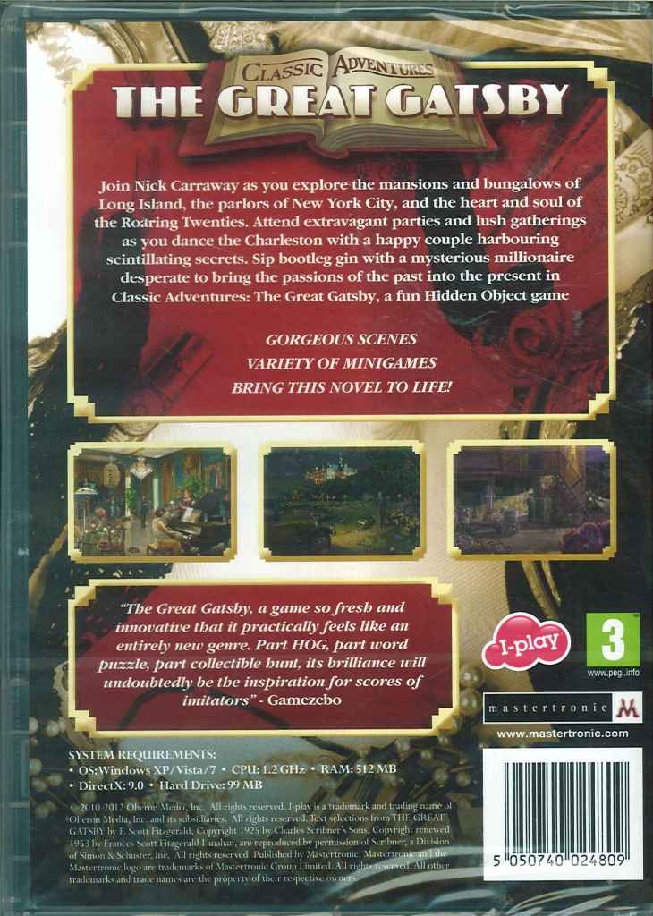 Classic Adventures, The Great Gatsby, Hidden Object PC Game,