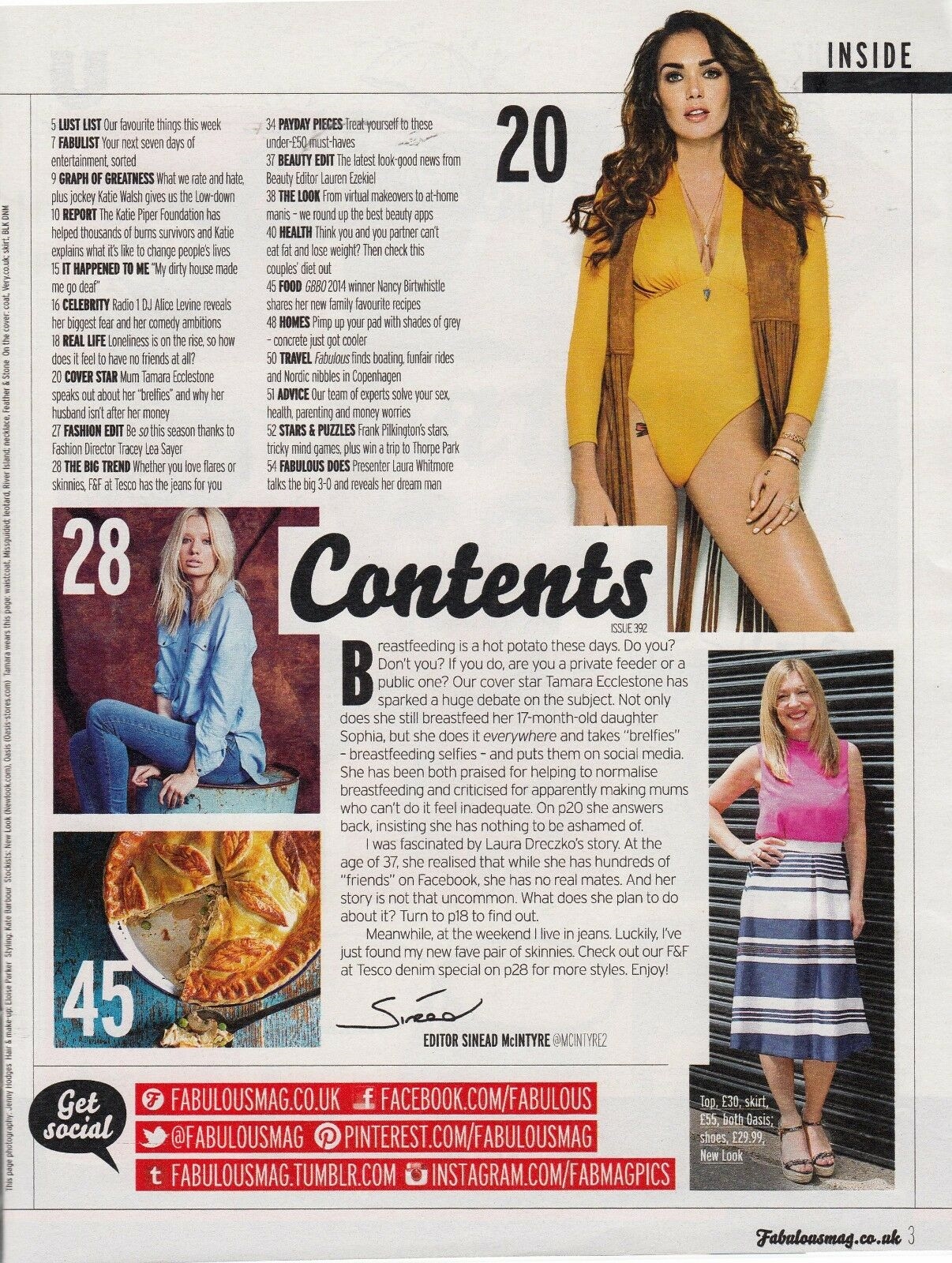 The main article is about Tamara Ecclestone breastfeeding selfies and Katie Piper & co talk about their scars.