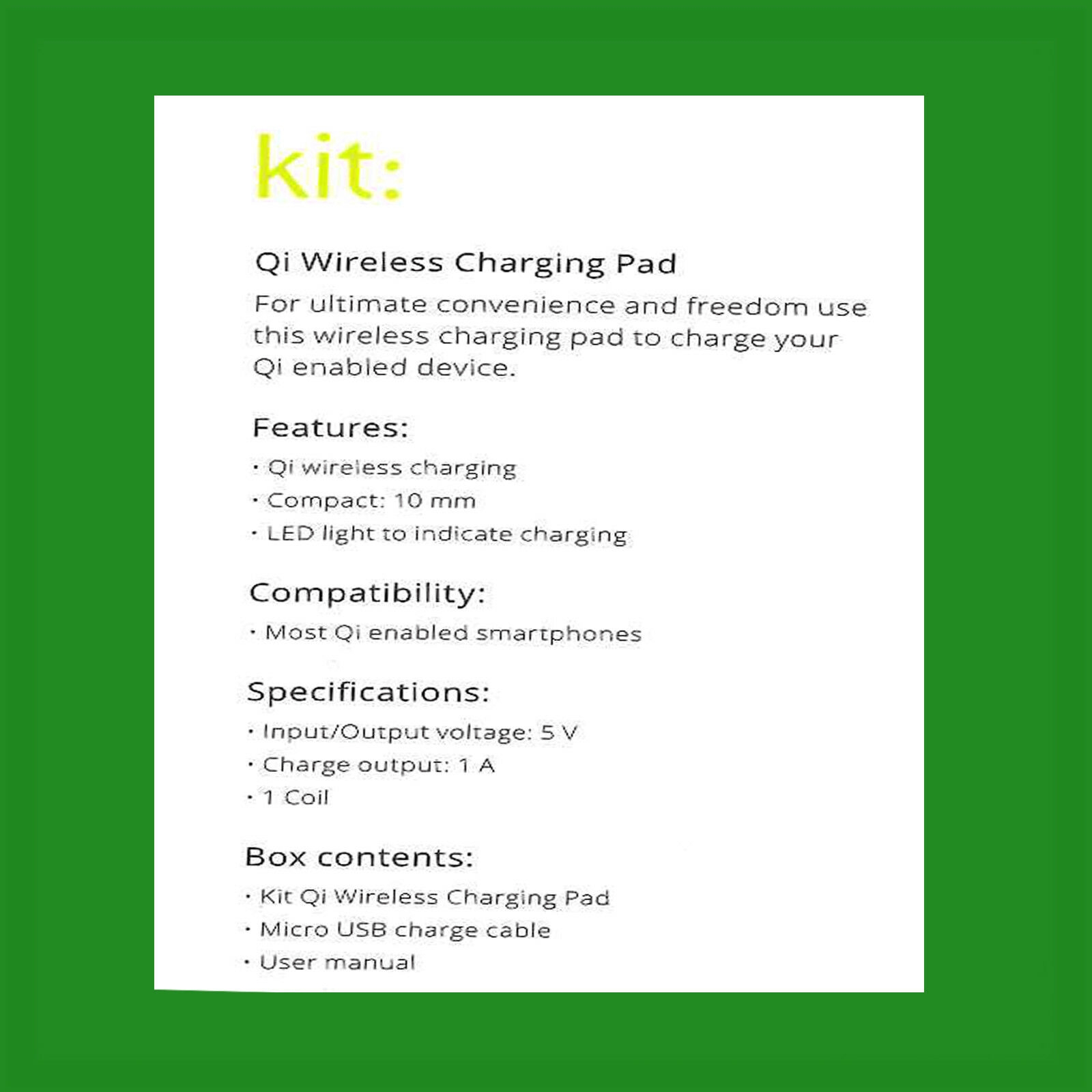 • IN THE BOX – Kit Qi Wireless charging pad, Micro USB cable and User manual