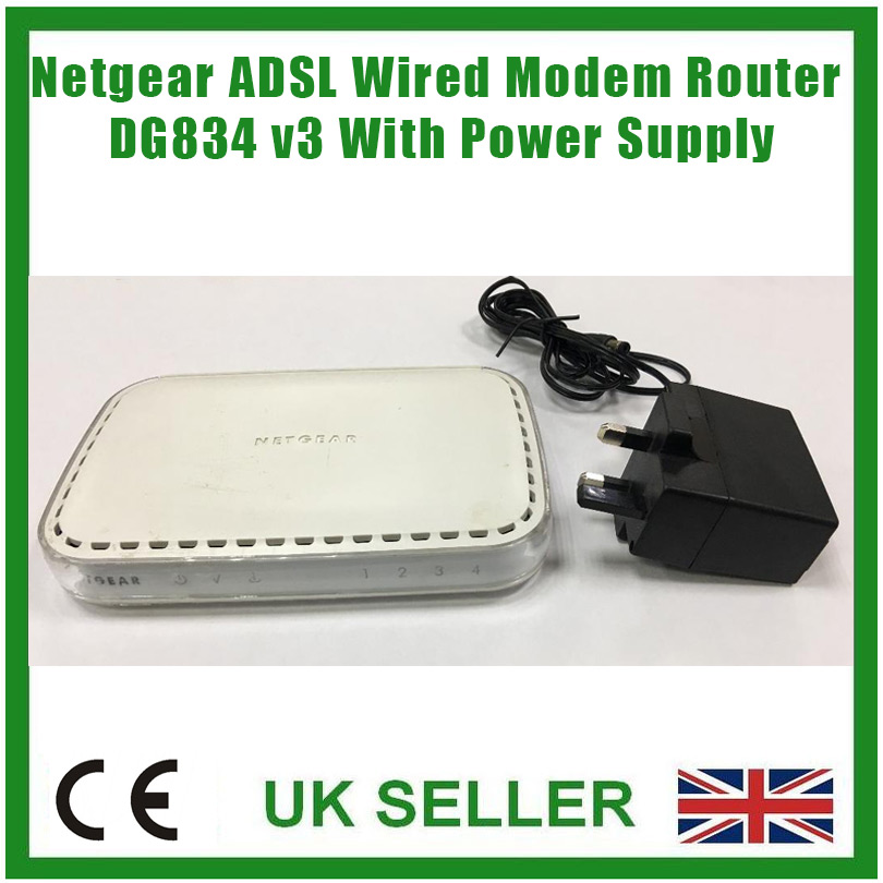 Netgear ADSL Wired Modem Router DG834 v3 With Power Supply