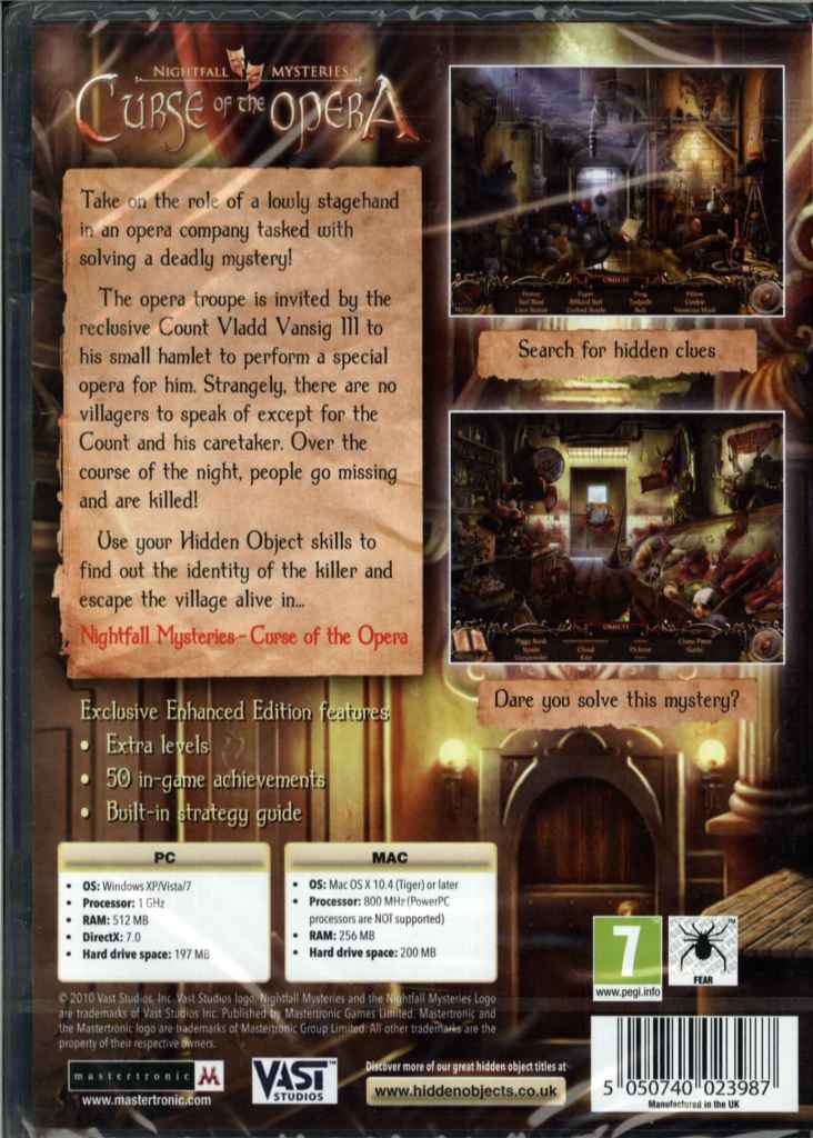 Nightfall Mysteries, Curse of the Opera, PC & MAC Hidden Objects Game, New & Sealed, Fast Delivery